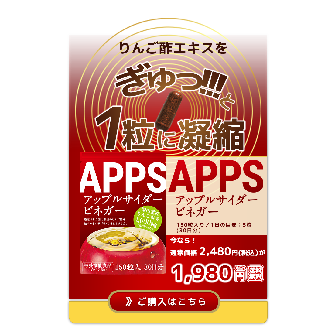 APPSは原料から製造まで全て日本製の初の国産りんご酢サプリ